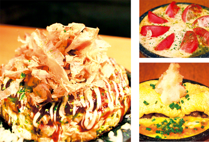 (左)さぼりといえばお好み焼き! トッピングも追加して自分だけのお好み焼きにしよう。(右上)ピザのおいしい所だけを抽出しましたと言わんばかりの鉄板料理。熱せられて甘みの増したトマトとチーズの塩気が最高のマッチング。(右下)さぼり名物の「牛すじオムレツ」。ふわとろのオムレツの中からは大きな牛すじが! しっかりした味付けの牛すじだが、卵のまろやかさと大根おろしがさっぱりしているので箸が進む一品。 荻窪駅南口から徒歩3分。商店街と住宅街の間にあり、知る人ぞ知るお店だ。昼は鉄板焼きランチ(サラダ食べ放題・お茶類ドリンク飲み放題付き)、夜はお酒を飲みながらディナーを楽しめる。使用する素材にもこだわりがある。野菜は厳選した産地の物を使用し、鶏肉は市場にあまり出回らない大山鶏、豚肉は最高級の岩中豚、牛肉は黒毛和牛のA5ランクを使用している。 さぼりに来たらまず注文したいのはお好み焼きだ。「お好み焼き」「ねぎ焼き」「モダン焼き」があり、その時の気分で好きなものを選ぼう。 お好み焼きはカウンターで焼いたものを持ってきてくれるので、それまでは一品料理を頼んで楽しもう。本誌お勧めは「牛すじのオムレツ」・「鉄板カプレーゼ」だ。この他にもここでしか食べれない料理がたくさんあるので、何度も訪れたいお店だ。