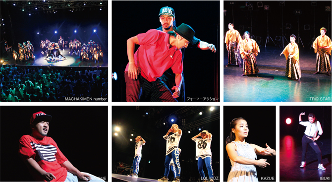 第2部の先陣を切ったのはBBB。リーダーAKIHIC☆彡の怪我によりフルメンバーのパフォーマンスが出来るかどうか心配されていたが、登場したのは7人のフルメンバー。音を視覚で表現するファンタジスタ達は大いに会場を盛り上げた。彼らの実力はもちろんの事だが、彼らが使用するオリジナル音源を聞くだけでも価値がある。現在日本で一番ライブパフォーマンスがすごいダンスチームであることを証明した。