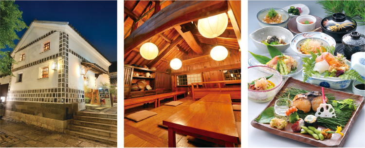 美観地区のしっとりとした風情の中に佇んでいます。店内は一枚板の檜のカウンターがあったり、木の暖かみを感じられる雰囲気。 瀬戸内の旬魚と地酒を味わって、倉敷を心ゆくまで堪能しよう。 美観地区の真ん中にあり、約180年前の米蔵を改装した和食料理店。 瀬戸内の鰆、ままかり、下津井の活タコ、寄島のさわら、六口島の平目、穴子等の旬魚と岡山の地酒をふんだん楽しめます。 長年培ってきた職人の目で選別された選ばれし『旬魚』は、瑞々しく鮮度抜群で格別。調味料にもこだわり、たまり醤油は地元産の造り醤油を使用して独自ブレンド。目で舌で鼻で、五感で郷土の旨味を楽しめるお店です。あちの郷 ままかり亭 ☎ 086-427-7112 岡山県倉敷市本町3-12 昼/11:00〜14:00、夜/17:00 〜22:00 定休日:月曜日(年末・年始・祝祭日は営業) |