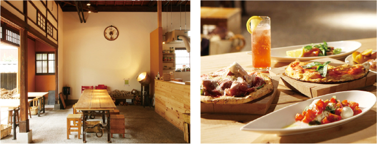 天井が高く、木の温もりを感じられる店内。外には緑に囲まれたテラスも。窯を使って作られる前菜や肉料理は香ばしく食欲をそそります。 古民家を改装した趣きある空間で、石釜で焼いたナポリピザを味わう 80年前の日本家屋を改装した店内は、天井が高く日本の情緒が残り開放感ある雰囲気。イタリア産の小麦粉でできた生地をナポリから取り寄せた窯で焼きあげたピザは、外はさっくり中はモッチモチの本場の味!また、イタリアのチーズと地元の野菜は相性抜群で、新しい倉敷の味を楽しむ事ができます。ピッツェリア コノフォレスタ ☎ 086-423-6021 岡山県倉敷市阿知2-23-10 ランチ11:30~15:00/カフェ&ピザ15:00~17:30/ ディナー17:30~21:30(L.O21:00) 定休 毎週月曜 |