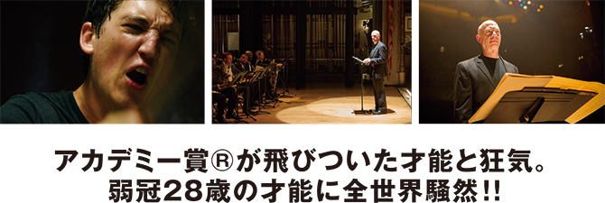 2014年2月、サンダンス映画祭─その映画を観た口うるさい映画マスコミは、総じて言葉を失い、次の瞬間、「大胆」、「危険」、「熱すぎる」とほとんど悲鳴に近い称賛を口にした。 STORY 偉大な音楽家を目指し名門音大に入学した才能あふれるドラマ―、ニーマンは「そこに入れたら将来を約束されたも同然」と言われるフレッチャー率いるバンドにスカウトされる。有頂天のニーマン。だが、彼を待っていたのは異常なまでの完璧さを求めるフレッチャーの狂気のレッスンだった。浴びせられる罵声、仕掛けられるワナ。じわじわと精神が追い詰められていく―。恋人、家族、人生までも投げ捨て、フレッチャーが目指す極みへともがき這い上がろうとするニーマン。果たして、フレッチャーはニーマンを栄光へと導くのか、それとも叩きつぶすのか?ラストステージ――二人が見せる衝撃<セッション>の結末は?