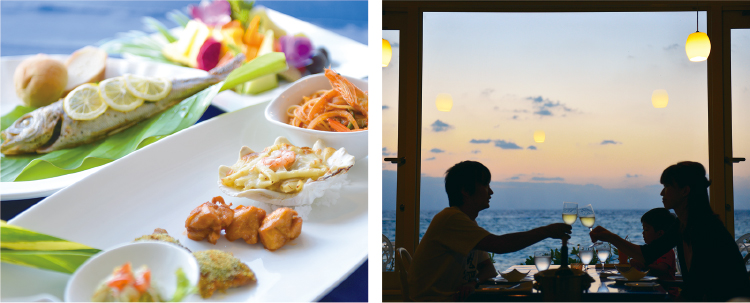 新鮮な魚介類に瑞々しい島野菜を使った地中海料理を提供。刻々と移り変わる景色を楽しみながら、ゆっくり過ごす事ができます。 昼間は青い海を、夕方は夕焼けを、夜は星空を。絶景を味わうレストラン。 2012年5月にオープンした「地中海レストラン アネリア」。店名の「アネリア」はギリシャ語のAnetos(心地よい)Palalia(海辺)を組み合わせた造語で、ヨロンブルーの海を臨む最高のロケーションでゆっくりと食事が楽しめる、大人の雰囲気ただよう空間です。地元食材をとりいれた地中海料理やギリシャワイン、スピリットを味わう事ができます。地中海レストラン アネリア ☎ 0997-97-5060 鹿児島県大島郡与論町立長358-1 プリシアリゾート ヨロン ランチ11:00~15:00(ラストオーダー14:30) ディナー18:00~21:00(ラストオーダー20:30) |