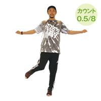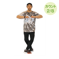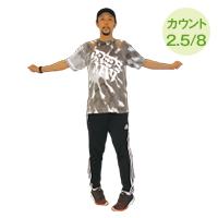 足を肩幅くらいに広げる 円を描くように腕を回す、脚はクロス 円を描くように腕を回す、脚はク...
