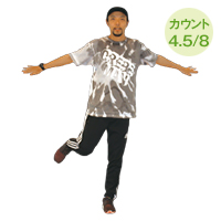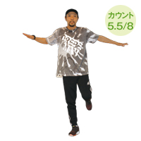 4で踏み込んだ足と反対の足を開き、外側の方を後ろに引く