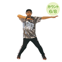 横に踏み込んだ足を上げ、両手を下から扇状に広げる