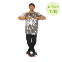 右手トゥエル、左手パンチ、右足重心 両手クロス、左足重心、右足はオープン エンカウントで右...