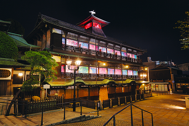道後温泉本館 インスタレーション 展示期間:2015/10/1〜2016/2/29 展示場所:道後温泉本館(映像投影とライトアップは18:00〜) |