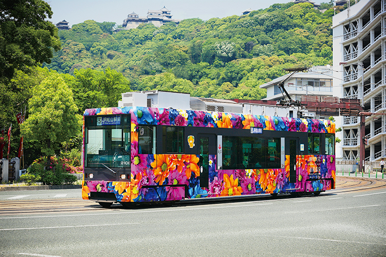 ラッピング電車展示期間:2015/5/1~2016/2/29 展示場所:松山市内 |