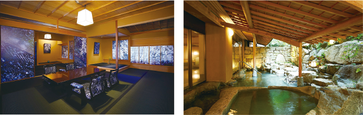 蜷川実花さんが東京・目黒川の桜を撮影したシリーズ「PLANT A TREE」が10+6畳の和室に展開されており、見学(予約制)ができ宿泊をする事もできます。蜷川実花さんが東京・目黒川の桜を撮影したシリーズ「PLANT A TREE」が10+6畳の和室に展開されており、見学(予約制)ができ宿泊をする事もできます。 慶応四年創業、道後の伝統で培われた極上の癒しを提供。 和室は全室、数寄屋造り、聚落壁になっており、素朴で上品な日本の伝統を楽しめます。4Fには西日本随一の能舞台「千寿殿」があり、能の体験や観覧をする事も。チェックイン・チェックアウトが昼の12時となっているので、ゆっくりと極上の湯船につかり瀬戸内の食材を堪能し、心ゆくまで日々の疲れを癒す事ができますよ。道後温泉 大和屋本店 ☎ 089-935-8880 愛媛県松山市道後湯之町20-8 部屋数/91部屋 |