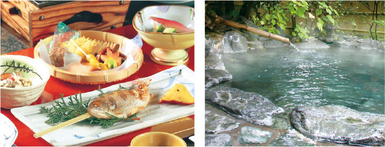 地元で採れた旬の新鮮食材。素材の良さを活かした自慢の料理。とろりとした独特の感触の山奥の秘境の湯を存分に満喫。 自然に囲まれた館で懐かしい休日を過ごす 客人を出迎えるロビーはどこか懐かしい大正ロマンを感じさせるクラシックな雰囲気。部屋は、プライベート温泉の完備された特別室など各種用意されています。料理は、寸又峡の自然が育んだ食材を使用し、職人がこだわりをもって仕上げる郷土料理を心行くまで堪能。 日常を忘れ安らぎのひと時を過ごしてください。翠紅苑 ☎ 0547-59-3100 静岡県榛原郡川根本町千頭279(寸又峡温泉内) |