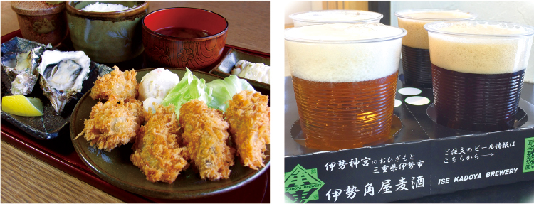 カキフライ定食には、焼き牡蠣も二つ付いてボリュームたっぷり!クラフトビールの味や香りの違いを楽しめる、4種類の飲み比べセット 大人ならではの楽しみ 伊勢角屋麦酒 内宮前店は、地ビールで有名なお店です。牡蠣料理と地ビールを一緒に楽しめるのが特徴で、お酒好きにも牡蠣好きにも外せないお店です。また、揚げたてのカキフライ串は食べ歩きにもぴったりです。伊勢角屋麦酒 内宮前店 ☎ 0596-23-8773 伊勢市宇治今在家町字東賀集落34 営業時間:11:00~20:00(L.O.19:30) [木]11:00~15:00 定休日:無休 |