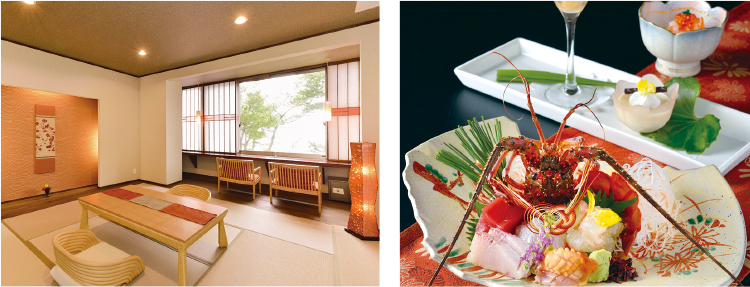 和モダンな雰囲気の中潮騒の響きに癒しのひとときを過ごせます。伊勢志摩で獲れた新鮮な海の幸を使ったこだわりの料理です。 二見浦を見渡し、参拝の疲れをほぐす 浜千代館は、日本の渚百選「二見浦」が目の前に広がる伊勢志摩の海辺の旅館です。夫婦岩・伊勢神宮へのアクセスも便利です。ゆったりくつろげる数寄屋風客室や目の前に海が広がる恋語りの間をご用意しています。老舗旅館ならではの行き届いたおもてなしをうけて旅の疲れを癒してください。海辺のお宿 浜千代館 ☎ 0596-43-2050 三重県伊勢市二見町茶屋537-26 客室26室 |