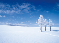 マイルドセブンの丘 昭和53年に「マイルドセブン」のCMが撮影された丘。ゆるやかな曲線を描く真っ白な丘に、霧氷で枝まで白くなった木々。マイセン愛煙を自負するダンサーなら、ぜひここへ行くべし!☎0166-92-4378(美瑛町観光協会) 北海道上川郡美瑛町美田 JR美瑛駅から車で約10分 写真提供:美瑛町観光協会