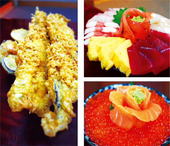 (右上) 深川つり舟1番人気の海鮮丼。納得のボリューム感! みそ汁は蟹で出汁を取っているので、観光地で食べるものと同じ味を堪能できる。(右下) 誰もが1度は食べてみたいと思う、夢のいくら丼。中央に盛りつけられた美しい花はサーモンでできているので、親子海鮮丼を味わえる。(左) 30cmはある穴子の天婦羅がなんと2本ものった穴子丼は器が見えないほどの大迫力。穴子の身は肉厚で本来の旨味を堪能。野菜の天婦羅もあり、飽きずに食べることができる。 JR中央線国立駅南口から徒歩3分。深川つり舟の提灯に誘われて中に入ると、そこには料亭のようなカウンターと、屋形船を想像させる座敷が広がっている。店内には近隣にある大学のイベントポスター等が飾られ、地元民だけでなく学生にも親しまれているようだ。1番人気の海鮮丼は、まさに海鮮で作られた大輪の花そのもの。ネタも新鮮なので、刺身にして食べても良し、ご飯と一緒に食べてよしの嬉しい一品。ご主人曰く学生の子達たくさん食べてもらいたくてこんなにデカ盛りになったのだそう。料理だけでなく、ご主人の愛情もデカ盛りである。デカ盛り店はたくさん存在するが、深川つり舟のデカ盛りは上品で贅沢なのである。そして驚くのはその量だけではない。値段もリーズナブルなのである。これだけの量と食材を使っても、1番高いもので1500円なのだ。女性やキッズ用にミニサイズもあるので老若男女楽しめる。料理もお店もハートフルなので、心もお腹もいっぱいになりたい方は是非行って欲しいお店だ。