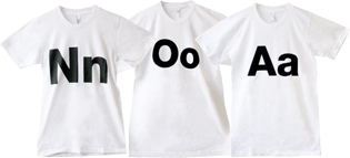 ユニセックスアルファベットTシャツ ¥2,900ヘルベチカプリントでアルファベットがプリントされたベーシッククルーネックTシャツ。 |