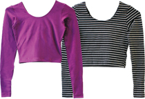 シャイニーメッシュロングスリーブクロップトップ ¥4,000ソフトなシースルーのナイロンメッシュトップ。すそをそではダブルの縫い目。体にきれいにフィットするセクシーなアイテム。 |