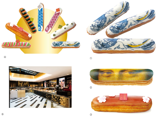 ①「ラ・ヴァーグ」 :ネーミングは、フランス語で波を意味している。北斎の浮世絵が印刷された日本らしいデザインが大人気のロングセラー商品。