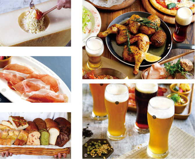 麦を原材料とし、さらには発酵という共通点から実は相性の良いビールとパン。さらにビールによく合う料理と共に三位一体となったペアリングを楽しむことができる。