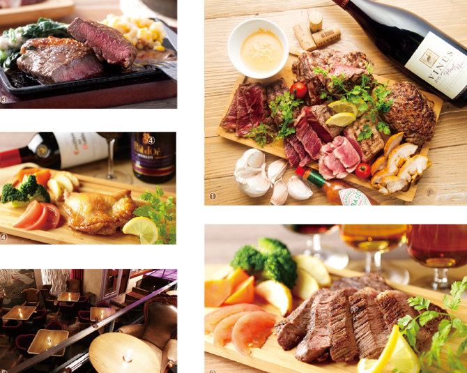 ① ② ③ ④6種の選べるステーキ食べ放題コース:熟成肉からサーロイン、イベリコ豚、カルビ、ロース、タンドリーチキン等、大人気のステーキが破格の食べ放題で人気殺到のコース。