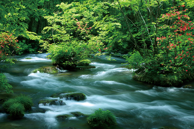 時代を重ね、創り出された自然美に身も心も委ねて・・・ 十和田湖の子ノ口から焼山までの約14kmの流れは、豊かな樹木、十数か所の滝、いくつもの表情を持つ美しい流れや様々な奇岩・奇勝が見事な渓流美を作り出し、四季折々の自然美を堪能できます。奥入瀬渓流 ☎ 0176-74-1233(奥入瀬渓流館) 十和田市奥瀬字栃久保183 JR新青森駅よりJRバスで約2時間 |