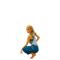 右から左に腰を回す。膝を伸ばして!