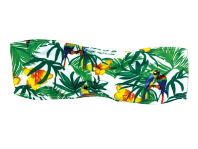 プリントナイロントライコット ルーシュフロントビキニチューブトップ