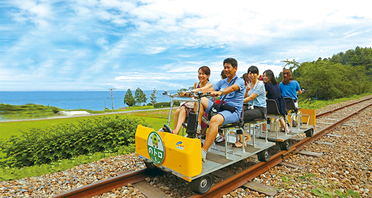 トロッコを漕いで能登の自然を楽しもう 2005年に廃線となった、のと鉄道能登線を利用し、恋路駅から宗玄トンネルまでの300mを自分で漕いで走れる奥のとトロッコ鉄道「のトロ」。恋路海岸と奥能登の景観を眺めながら爽快感を味わえます!電動補助付きの足漕ぎ式でとっても楽々!奥のとトロッコ鉄道 「のトロ」 ☎080-8698-2559 石川県鳳珠郡能登町恋路 料金:大人500円、小学生以下300円 9:00〜17:00(事前に予約が必要です)※雨天時は運行なし |