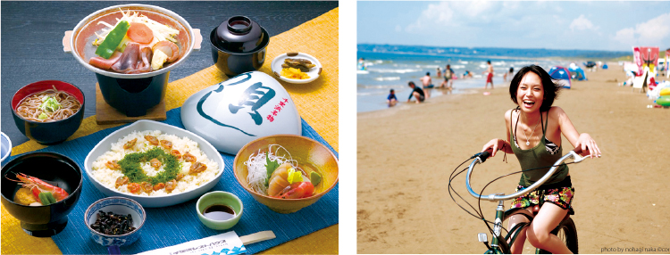 名物の貝めし御膳は能登の旨味がたっぷり!レンタサイクルで千里浜なぎさドライブウェイを走れば、非日常な爽快感を味わえますよ! 砂浜を車で走れる千里浜で、能登の味覚と自然を体験しよう 千里浜なぎさドライブウェイの出入口にある千里浜レストハウス。レストランでは海を眺めながら名物貝めし、2Fバーベキューコーナーでは新鮮な魚介類のバーベキューが楽しめます。いかとっくり、はまぐり根付づくりの体験コーナーもあり、形に残る忘れられない思い出ができますよ!千里浜レストハウス ☎ 0767-22-2141 石川県羽咋市千里浜町タ4番地の1 8:40~17:00 年中無休 |