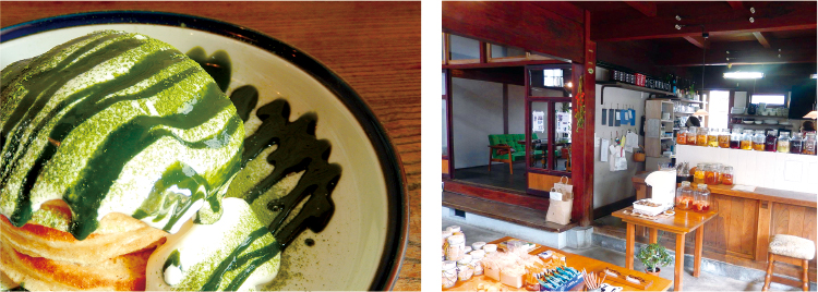 「北島屋さんの抹茶を使ったパンケ-キ」は一本杉通りにある北島屋茶店さんの抹茶をソースなどに使用し、生地に玄米粉を使用しています。 築100年の建物を活かした趣深いカフェ&ギャラリー 明治40年頃に建てられた旧鹿渡酒造をリノベーションし、味のある風情豊かな家具とインテリアで彩られたICOU。時間がゆっくりと流れるその空間では、七尾の良質な食材を使った料理と人と人との温かな出会いを味わうことができます。ICOU ☎ 0767-57-5797 石川県七尾市木町1-1 11:00~24:00(ラストオーダー/22:30) 定休日:火曜・第三水曜 |