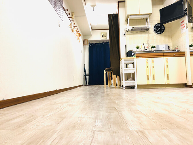 | 広さ | 19平米。2〜3人が踊ることができます。 |